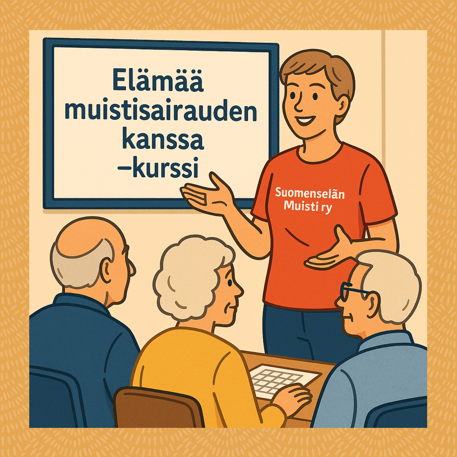 Elämää muistisairauden kanssa -kurssi järjestetään Kärsämäellä maalis-huhtikuussa 2026. Kurssi on suunnattu varhaista/lievää muistisairautta sairastaville ja kaikille muistisairautta sairastavien läheisille. Kurssilla saat perustietoa muistisairaudesta ja elämästä sen kanssa sekä mahdollisuuden vaihtaa ajatuksia samassa elämäntilanteessa olevien kanssa.